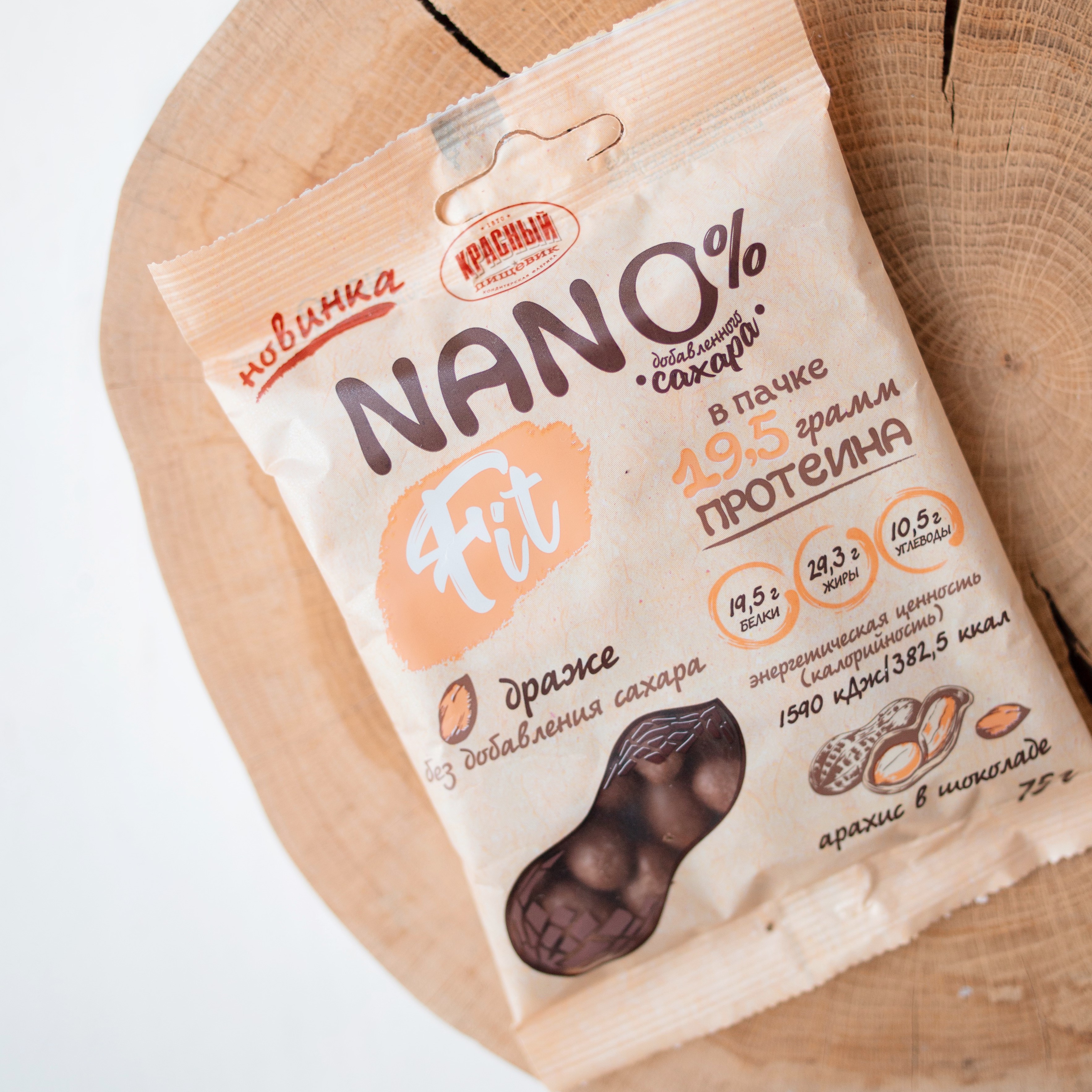 Chocolate-covered peanuts with whey protein concentrate