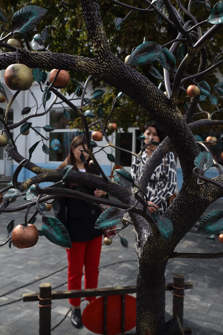 16 сентября на улице Социалистической произошло долгожданное событие: торжественно открыли арт-объект «Яблоня», которую «вырастила» фабрика «Красный пищевик». Кованная композиция имитирует покрытое плодами дерево, рядом – удобные лавочки и стильный указатель в сторону фирменного магазина предприятия.