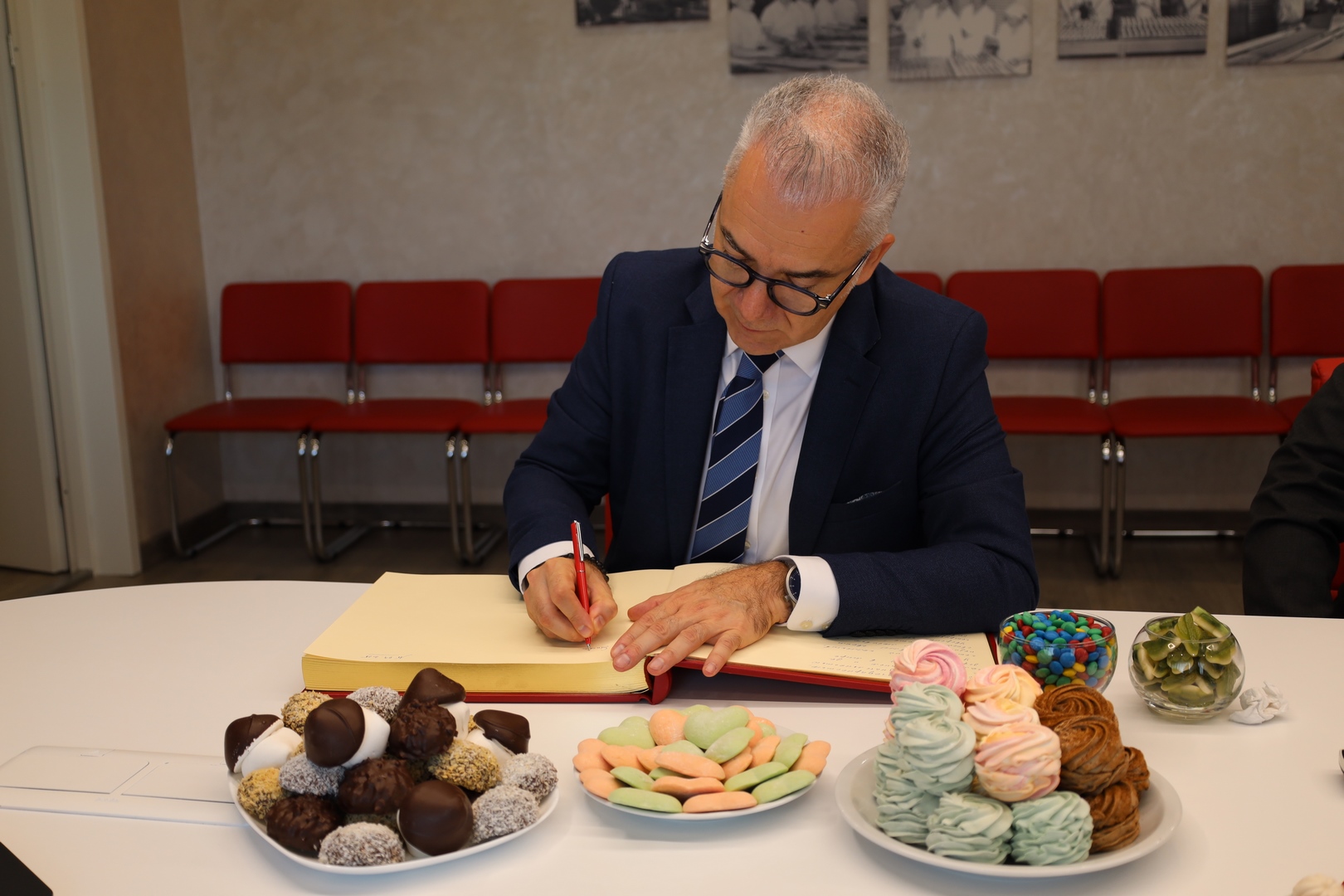 В завершение встречи Поверенный в делах Франции в Беларуси написал теплые слова в адрес коллектива предприятия в Книге Почетных гостей и поблагодарил руководство фабрики за теплый прием.