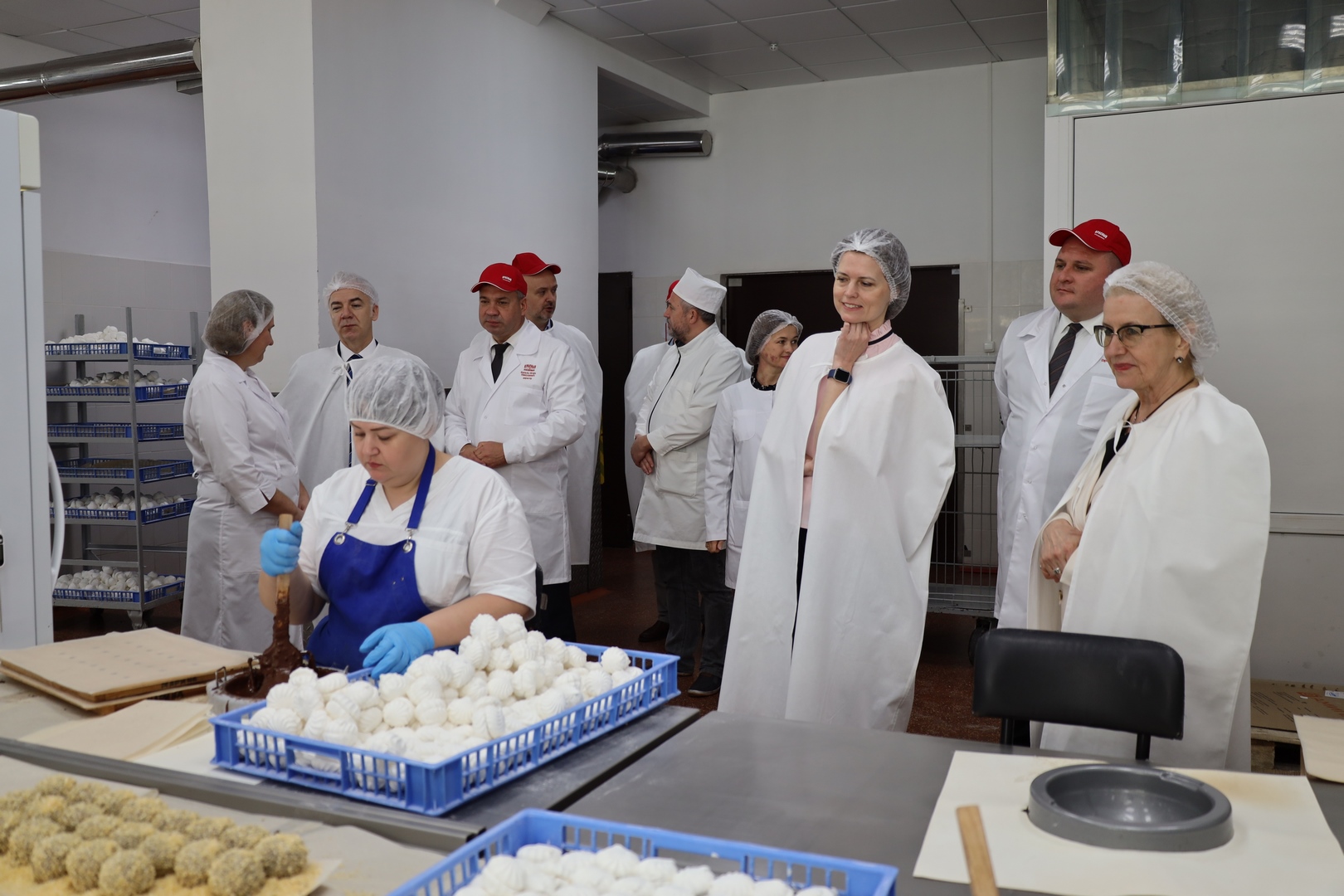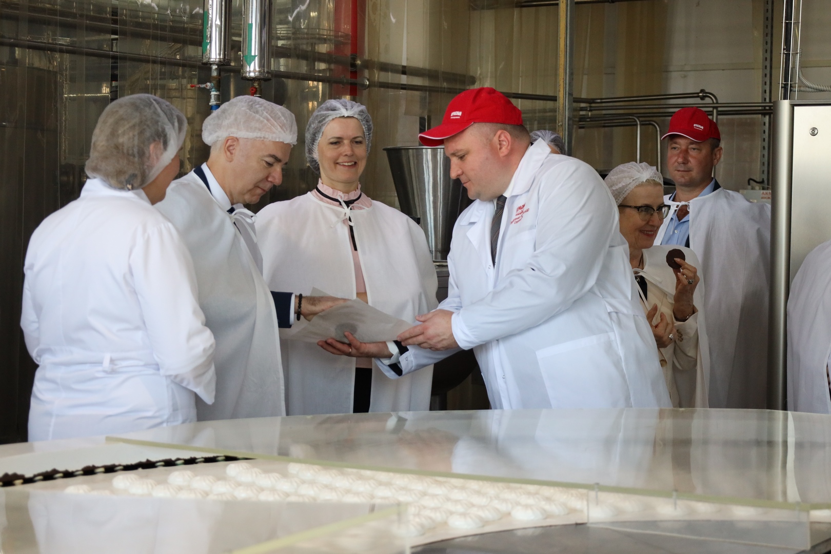 Делегация Посольства Франции в Минске, в состав которой помимо г-на Посла вошли консул Оливье Будес, ассистент консула Наталья Садовская и уполномоченная по торгово-экономическим вопросам Елена Лабунская, в сопровождении руководства предприятия посетила производственные цеха и логистический центр фабрики. Гостям показали, как производят известные во всем мире сладости по классическим технологиям, а также ознакомили с ассортиментом выпускаемых новинок: особенно всем понравился жевательный зефир.