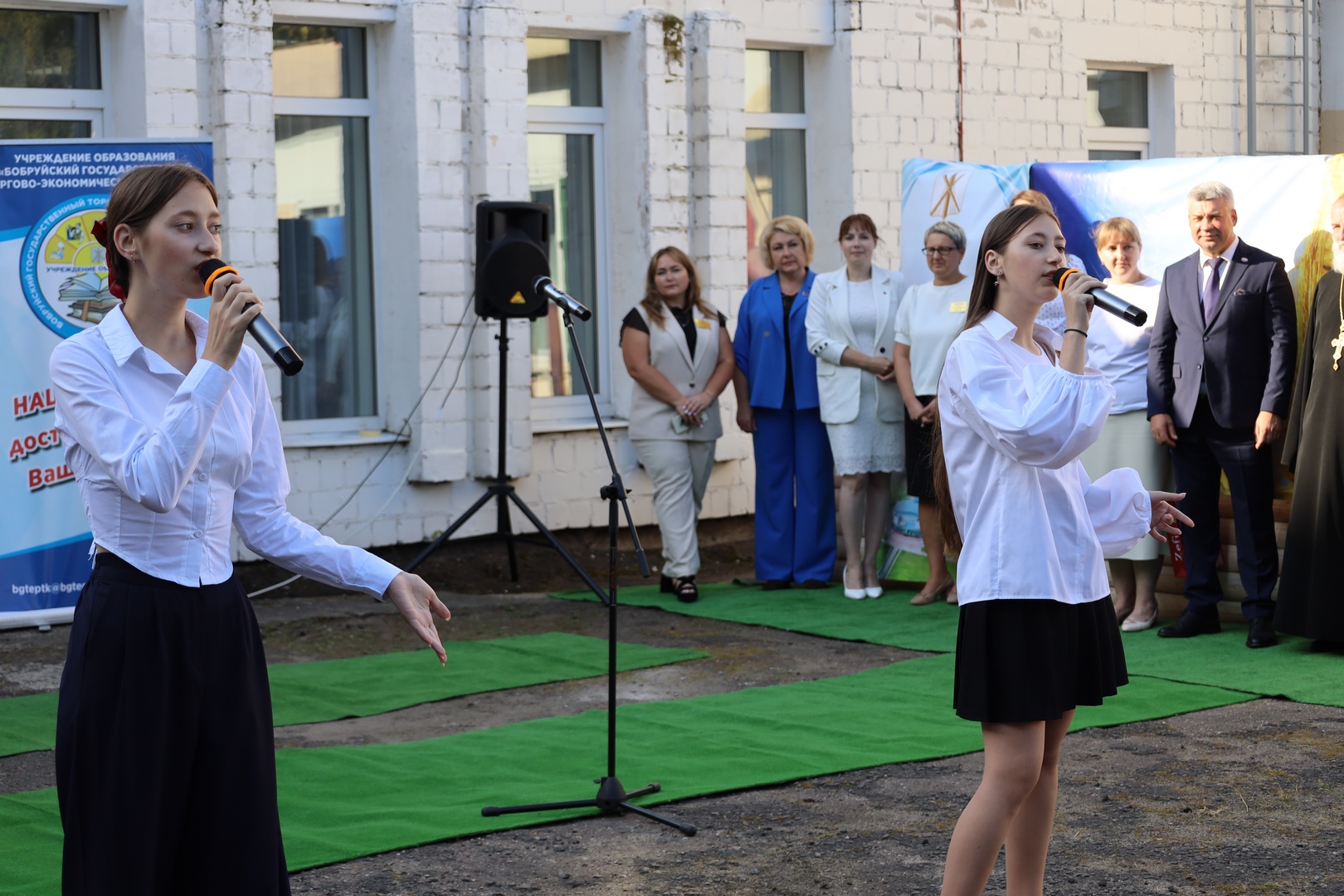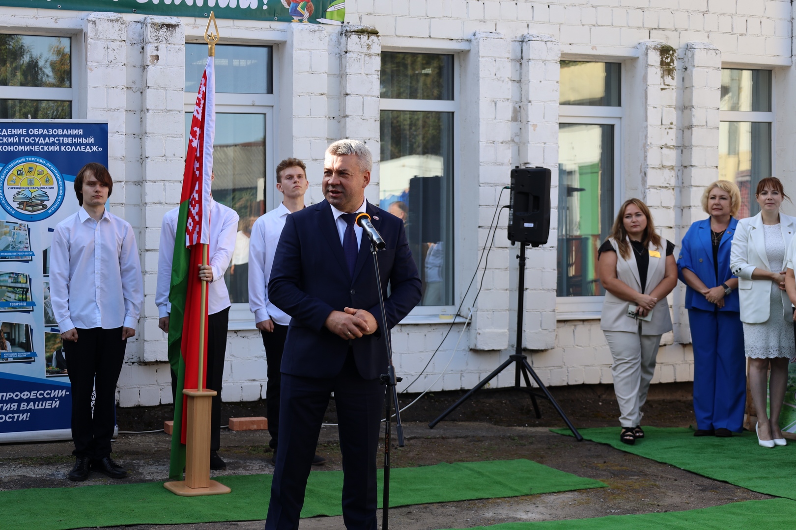 Директор ОАО «Красный пищевик» Игорь Николаевич Кисель и его заместитель по производству и снабжению Елена Николаевна Жлоба посетили торжественную линейку в УО «Бобруйский государственный торгово-экономический колледж», посвященную Дню знаний. Именно в этом учебном заведении с нового учебного года будут готовить будущих специалистов для предприятия по специализации «Изготовитель мармеладно-пастилочных изделий».