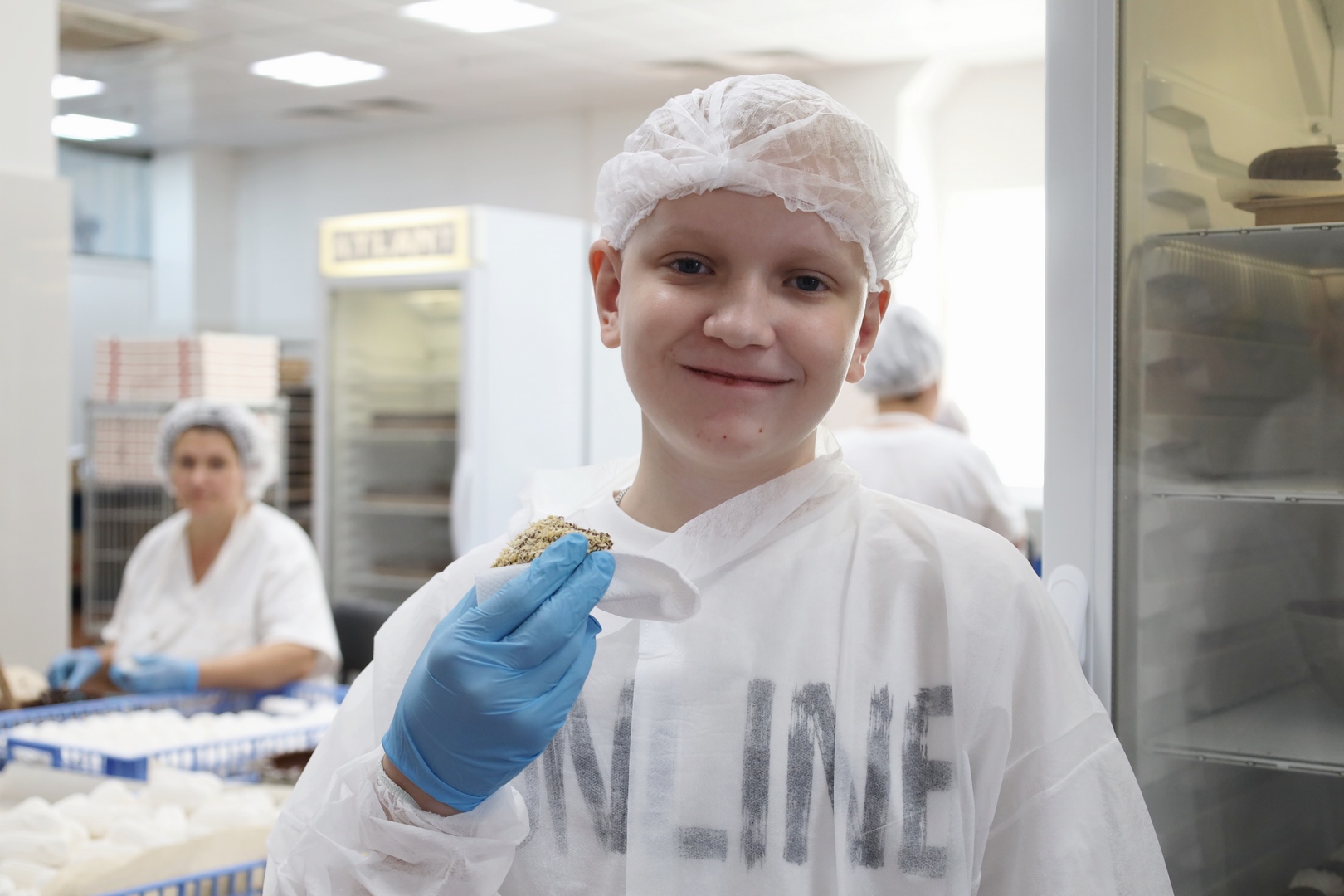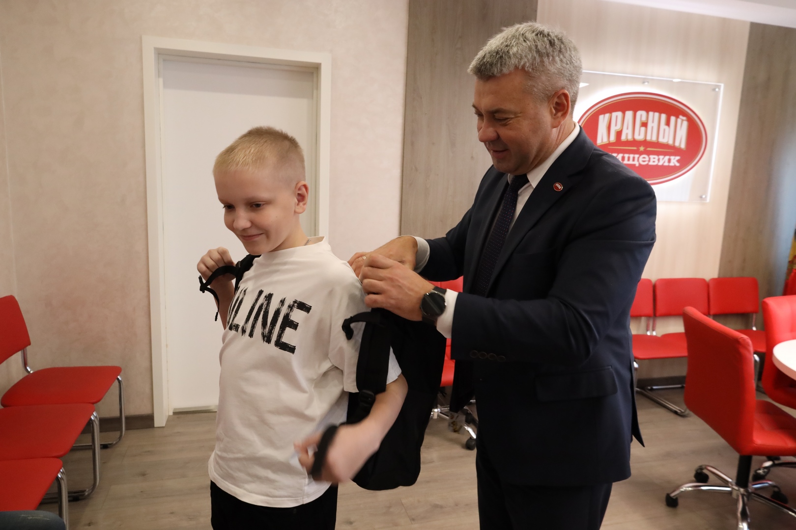Один из «виновников» мероприятия, школьник Даниил Давыдович, подарок принял лично из рук Игоря Николаевича. Руководитель предприятия похвалил мальчика за отличную учебу (Даниил не только практически круглый отличник, но и постоянный участник и призер городских Олимпиад по русскому языку) и вручил ему рюкзак, внутри которого – сувенирная продукция, школьные принадлежности и лучшие сладости фабрики. Кроме того, для парня провели индивидуальную экскурсию по предприятию: Даниил даже попробовал себя в роли «мастера зефирных дел»: под руководством опытного сотрудника погрузился в увлекательные процессы создания уникальных сладостей.