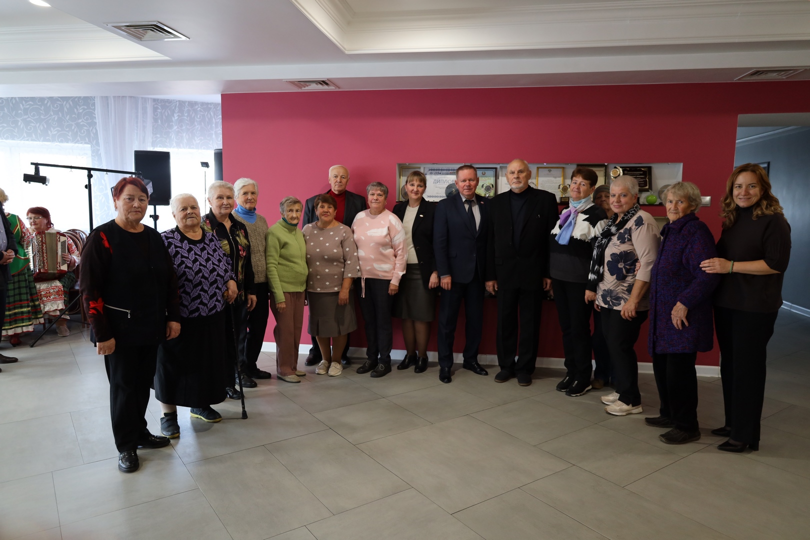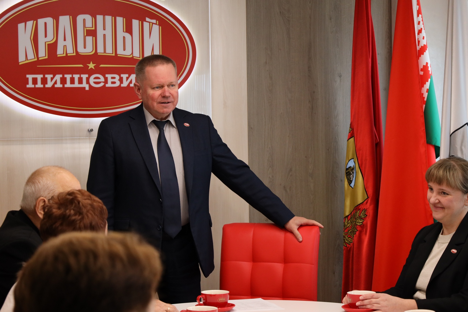 Прием начался с чаепития и просмотра корпоративного фильма о фабрике. Заместитель директора по идеологической и кадровой работе, социальным и общим вопросам Олег Викторович Малышевский, председатель профсоюзного комитета Татьяна Петровна Автомонова и председатель Совета ветеранов Александр Васильевич Маркачев тепло поприветствовали гостей и поздравили с праздником. Пожелали крепкого здоровья и бодрости духа, душевного тепла и заботы близких, спокойствия и достатка, долгих лет жизни, наполненных вниманием, уважением и радостью.