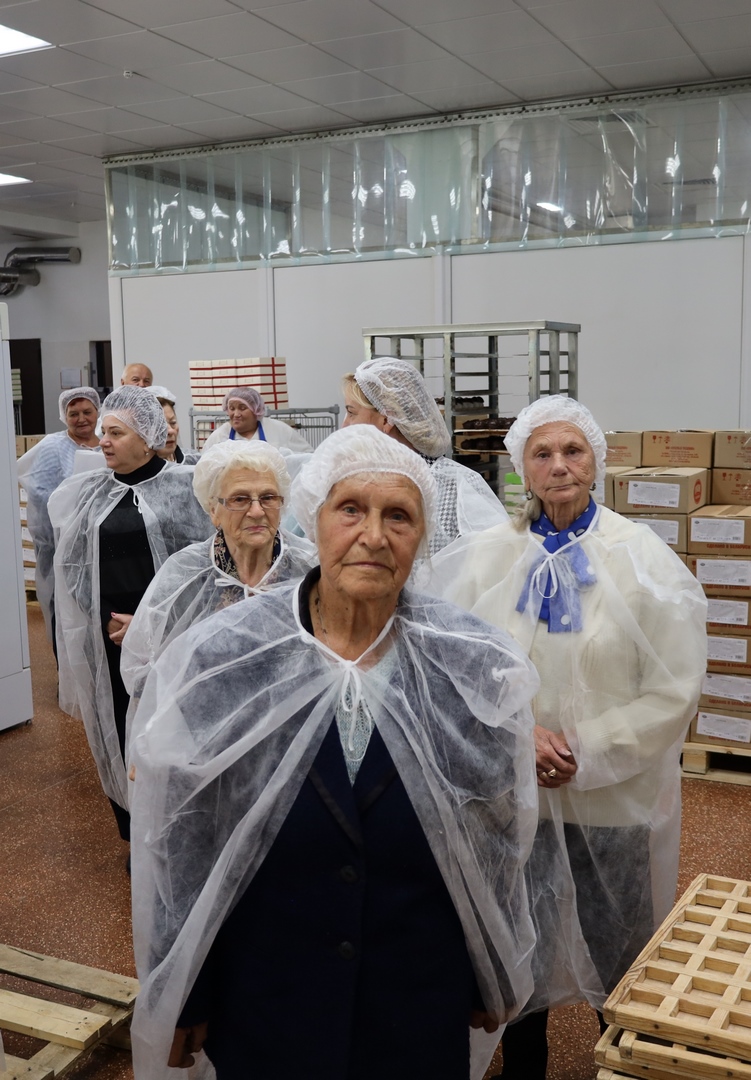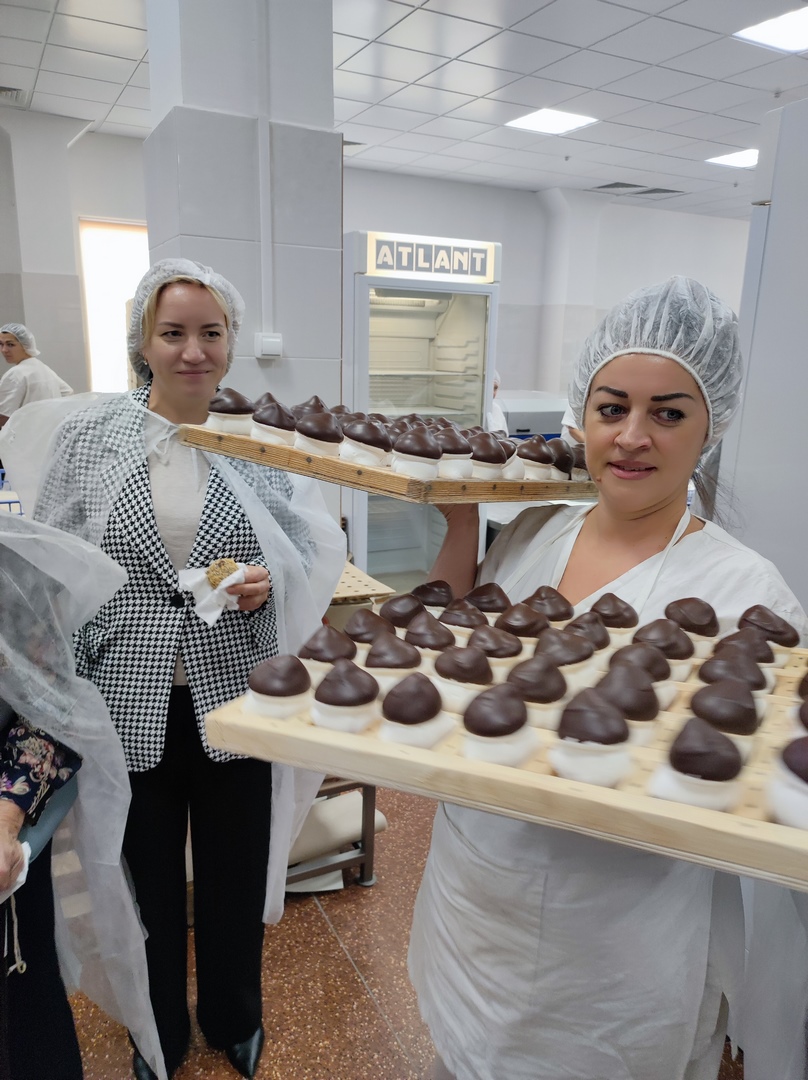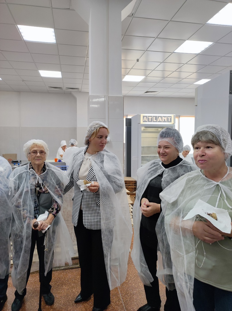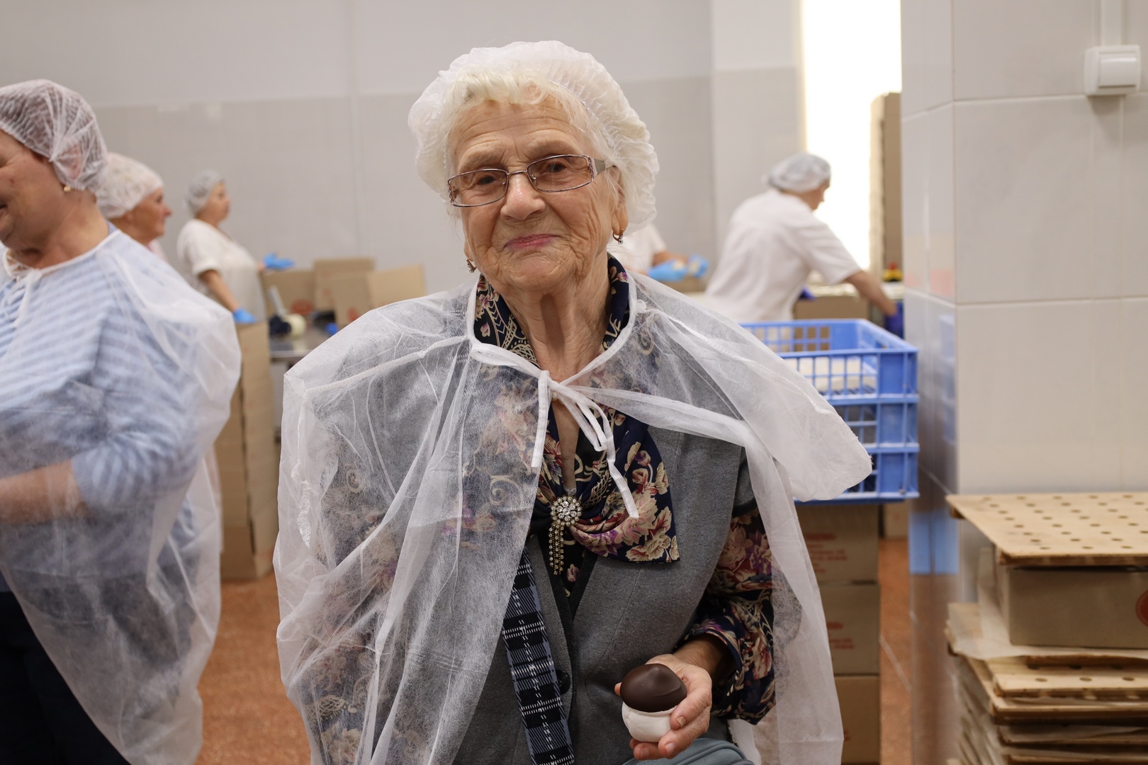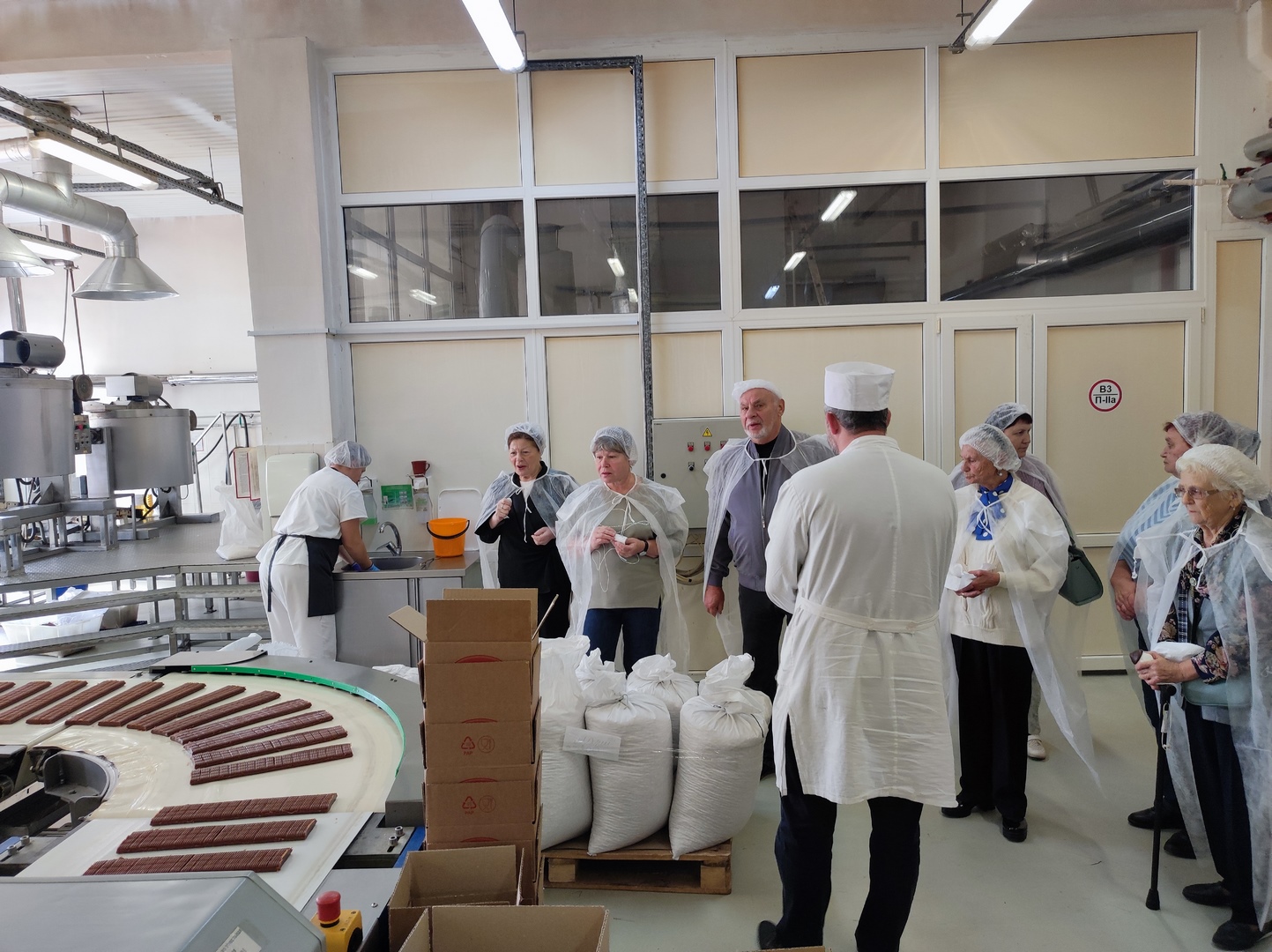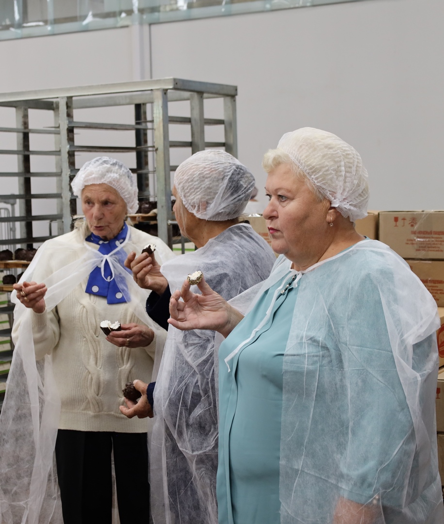 Для бывших работников предприятия это не только праздник, но и еще одна возможность отдохнуть и пообщаться друг с другом. Ветераны труда после торжественного приема посетили производственные цеха, где встретились с бывшими коллегами (с теми, кого в свое время обучали кондитерскому мастерству).