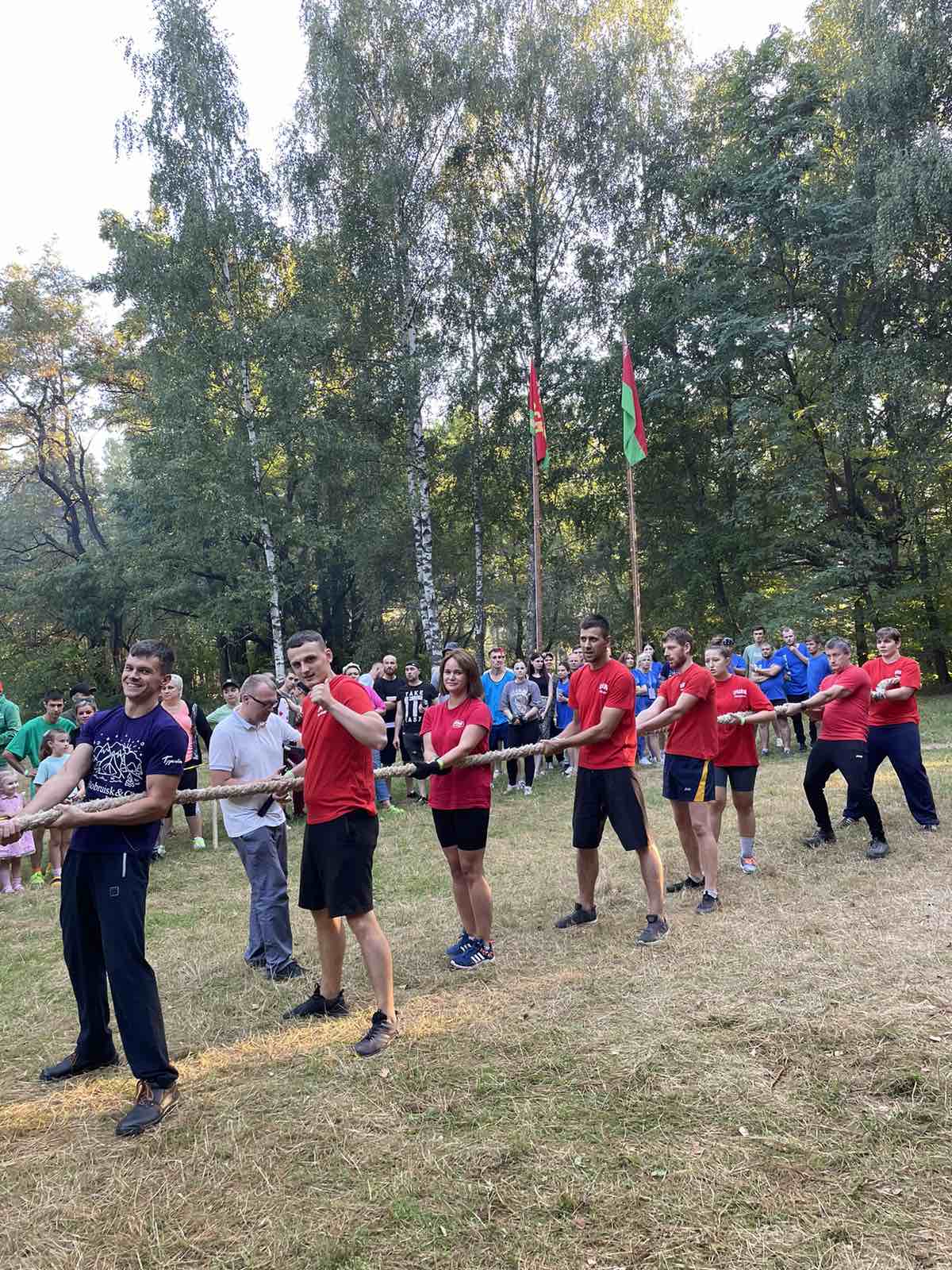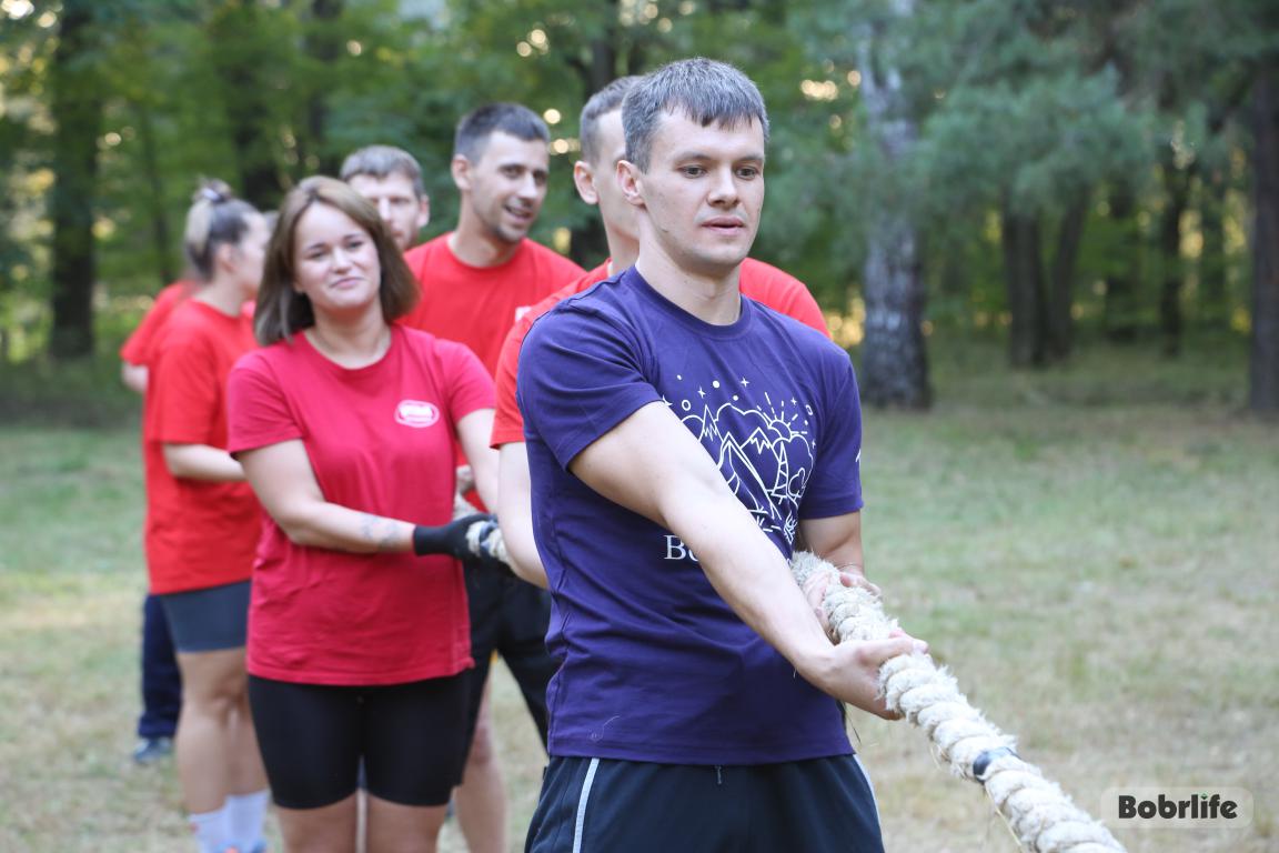 Отдыхали на природе и соревновались 8 команд: работники «Красного пищевика», «Бобруйскагромаша», завода КПД, Бобруйских электросетей, завода тракторных деталей и агрегатов, Бобруйского мясокомбината, индустриально-строительного колледжа. Всего около 150 человек.