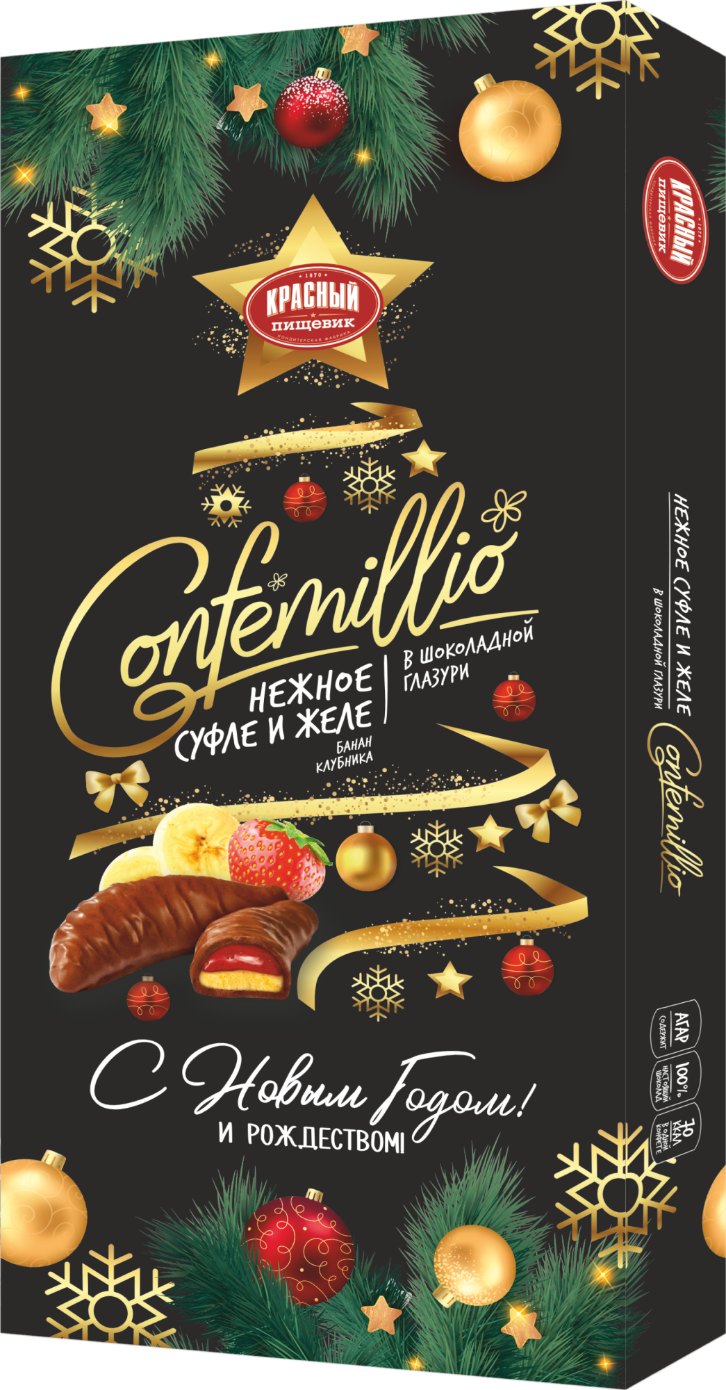 Конфеты ТМ Confemillio "Cо вкусом банана и клубники" в новогодней упаковке