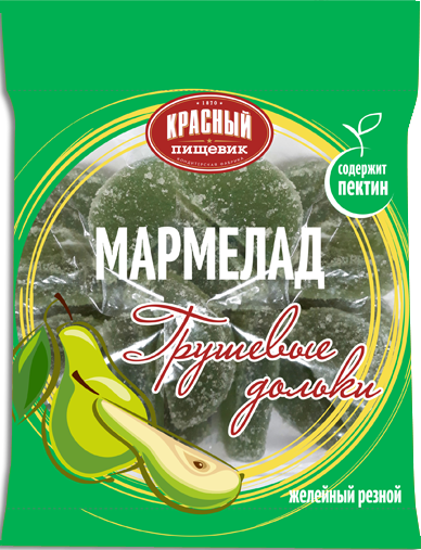Ingredients: sugar, maltodextrin, pectin gelling agent (stabilizer E452i); pH adjusting agents: sodium citrate 3-substituted, citric acid; pear fruit powder (pear concentrate juice and puree, maltodextrin carrier), "Duchess" flavoring agent, E141 coloring agent. May contain: milk, egg protein, sulfur dioxide.
