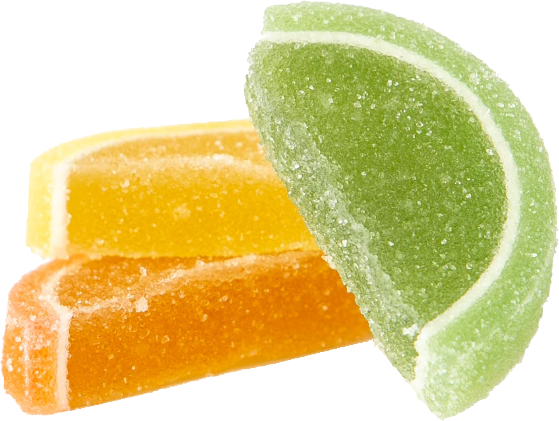 Ingredients: sugar, maltodextrin, egg protein, pH adjusting agents: sodium citrate 3-substituted, citric acid; gelling agents: citrus pectin (stabilizer E452i), agar; concentrated orange and lemon juices; flavoring agents: "Grapefruit", "Lemon", "Orange"; coloring agents: lutein, E141, curcumin, carmine. May contain milk, sulfur dioxide.