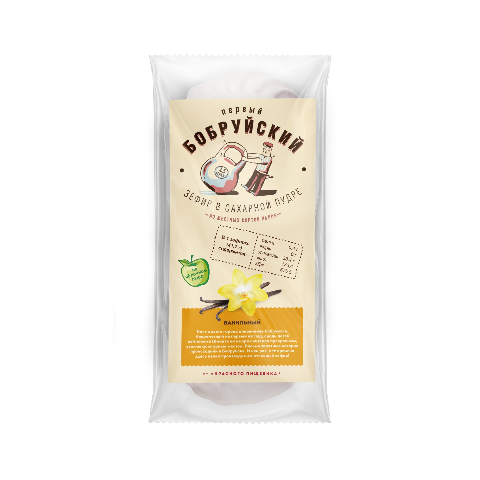 Ingredients: sugar, apple puree (apples, preservative E220), maltodextrin, egg protein, pectin gelling agent (stabilizer E452i), pH adjusting agents: sodium citrate 3-substituted, citric acid; flavoring agents: "Vanilla", vanilla extract; invertase.