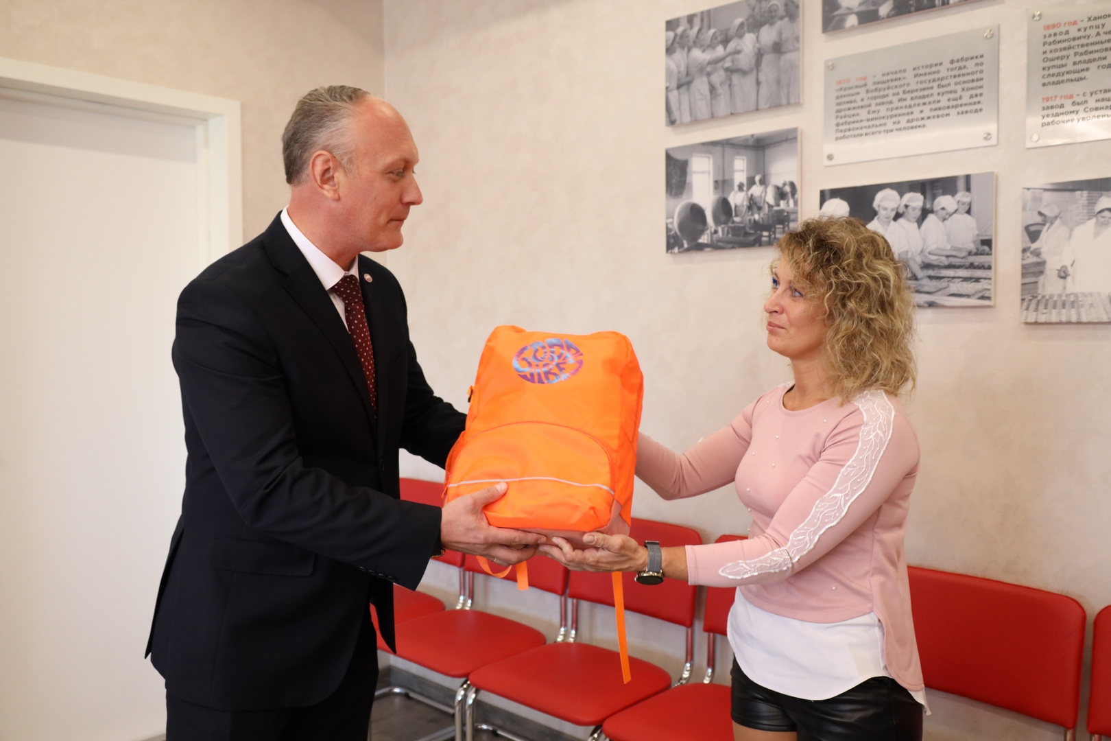 Один из «виновников» мероприятия, школьник Даниил Давыдович, подарок принял лично из рук Игоря Николаевича. Руководитель предприятия похвалил мальчика за отличную учебу (Даниил не только практически круглый отличник, но и постоянный участник и призер городских Олимпиад по русскому языку) и вручил ему рюкзак, внутри которого – сувенирная продукция, школьные принадлежности и лучшие сладости фабрики. Кроме того, для парня провели индивидуальную экскурсию по предприятию: Даниил даже попробовал себя в роли «мастера зефирных дел»: под руководством опытного сотрудника погрузился в увлекательные процессы создания уникальных сладостей.