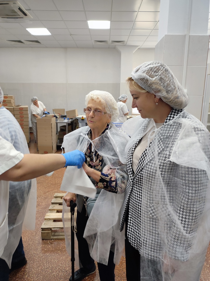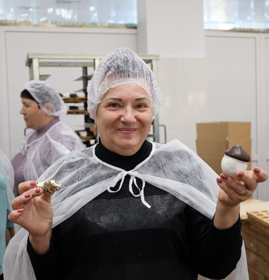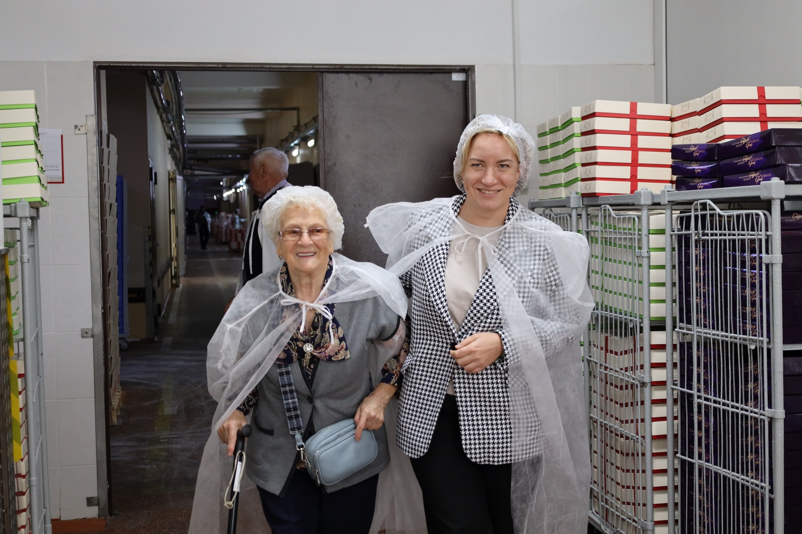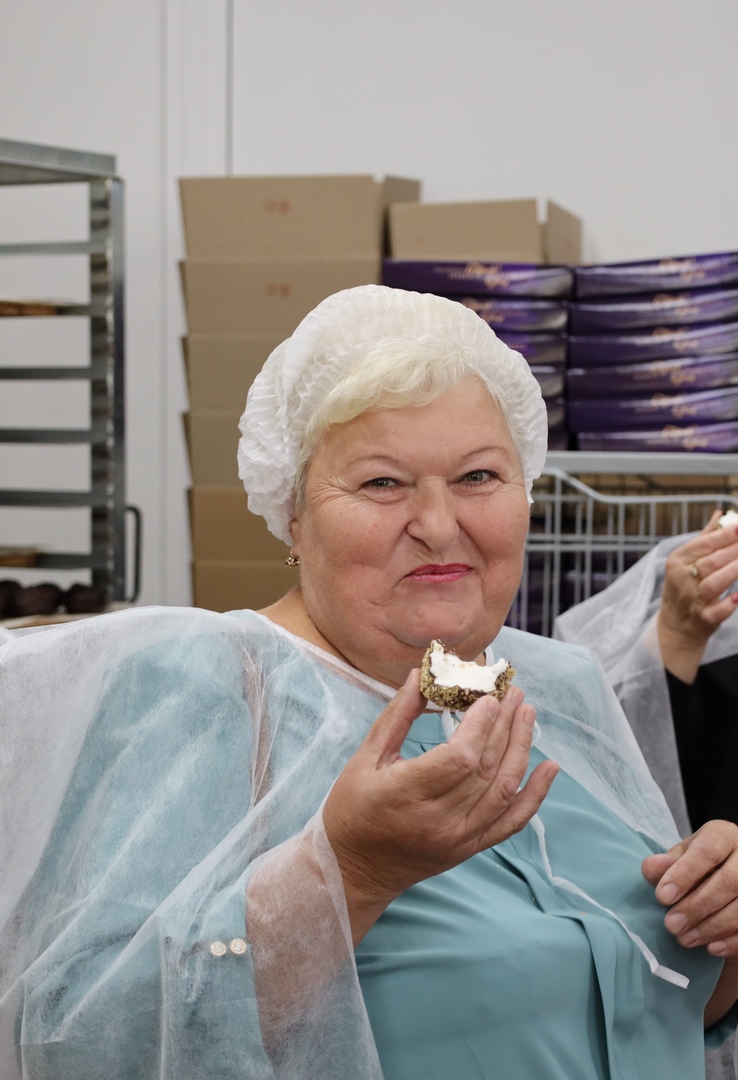Для бывших работников предприятия это не только праздник, но и еще одна возможность отдохнуть и пообщаться друг с другом. Ветераны труда после торжественного приема посетили производственные цеха, где встретились с бывшими коллегами (с теми, кого в свое время обучали кондитерскому мастерству).