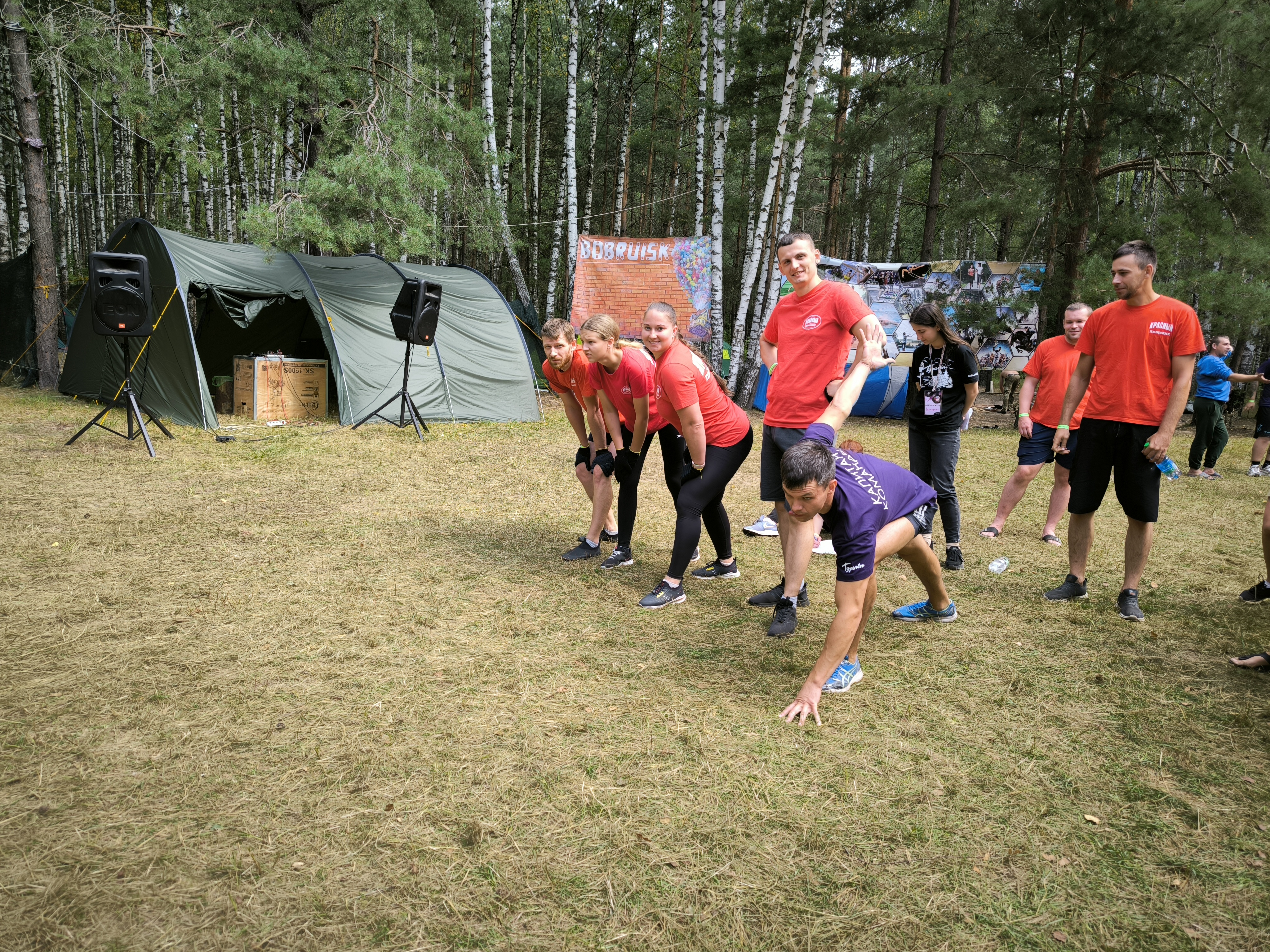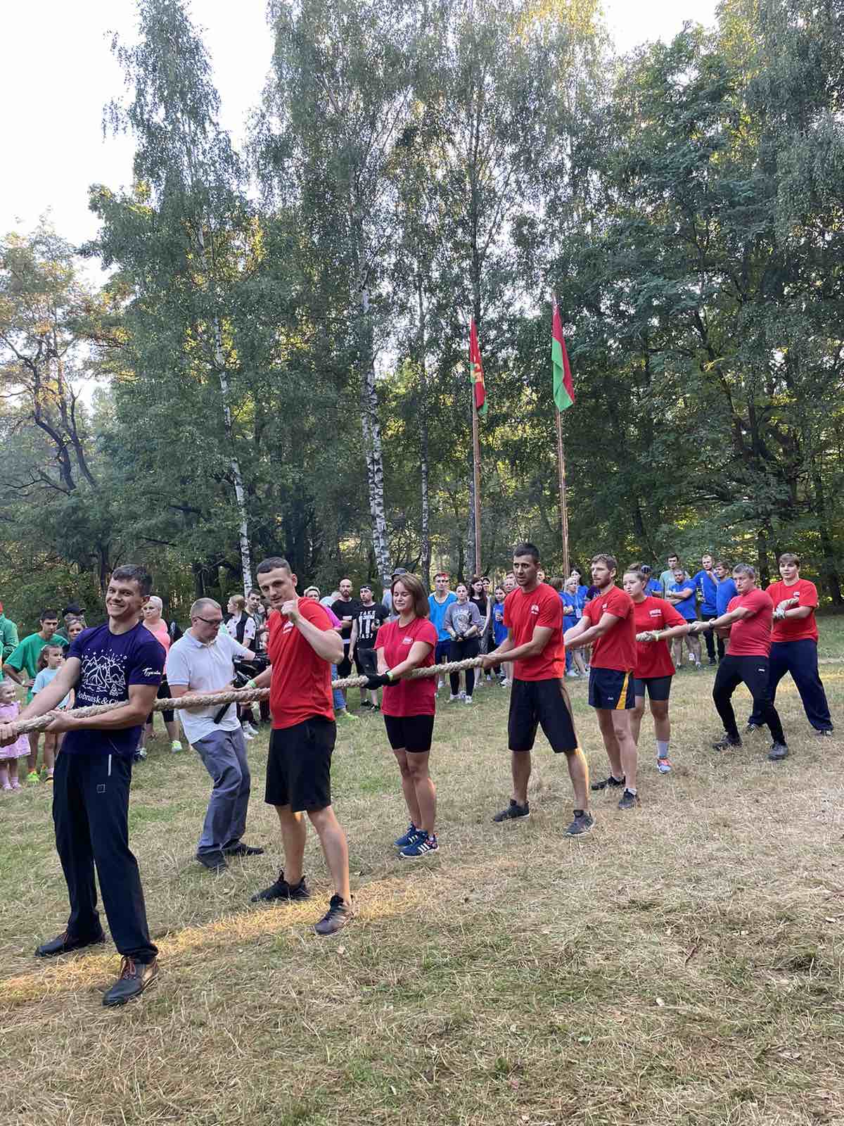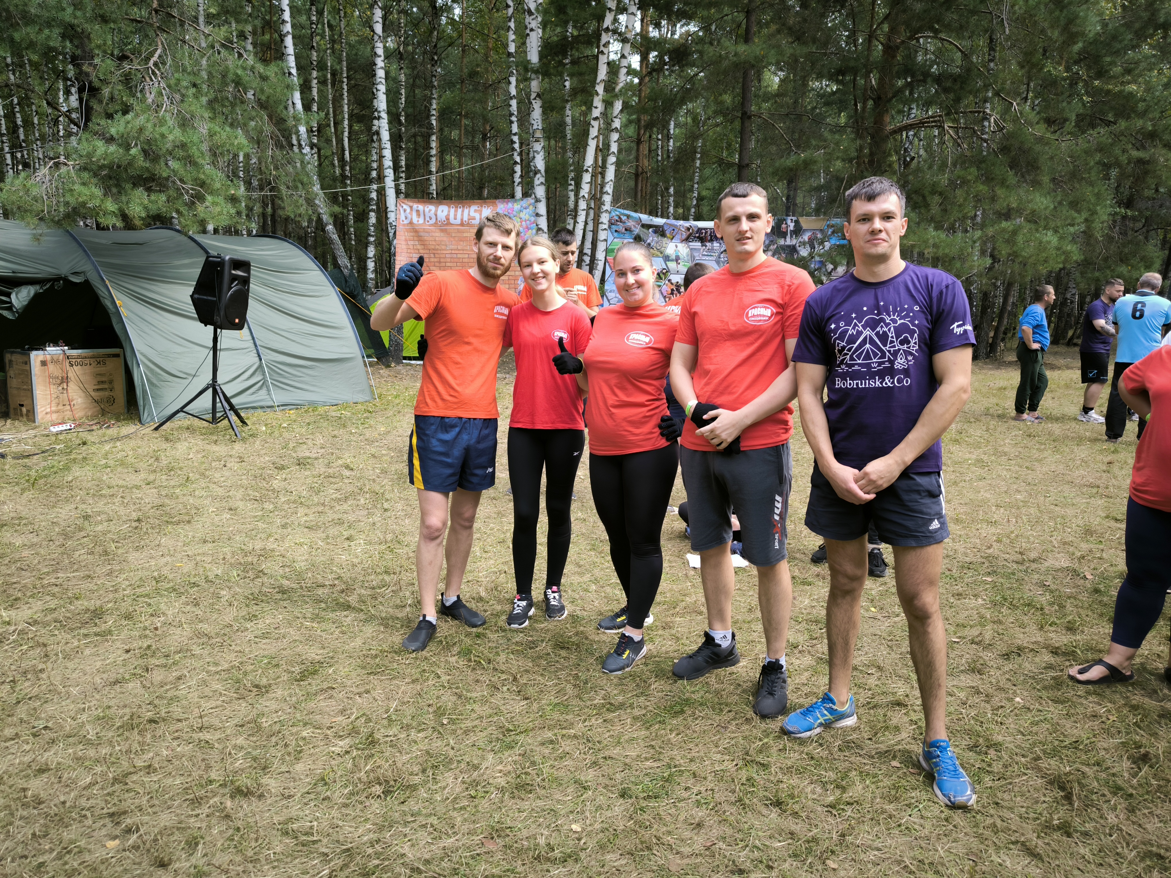 Отдыхали на природе и соревновались 8 команд: работники «Красного пищевика», «Бобруйскагромаша», завода КПД, Бобруйских электросетей, завода тракторных деталей и агрегатов, Бобруйского мясокомбината, индустриально-строительного колледжа. Всего около 150 человек.