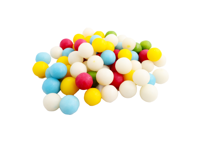 Состав: сахар, патока, регулятор кислотности лимонная кислота, агент антислеживающий тальк, ароматизаторы, красители: бета-каротин (антиокислители аскорбат натрия, альфа-Токоферол; агент антислеживающий диоксид кремния аморфный), кармины, индигокармин; масло растительное, глазирователь воск пчелиный. Может содержать орехи, молоко, арахис, диоксид серы.
