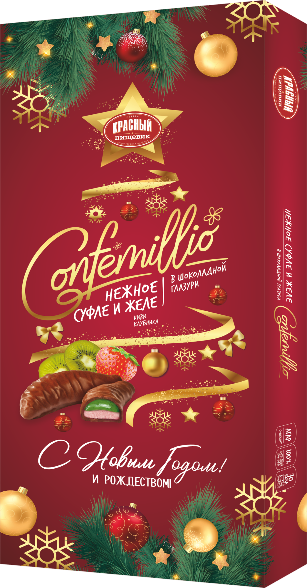 Конфеты ТМ Сonfemillio "Со вкусом киви и клубники" в новогодней упаковке