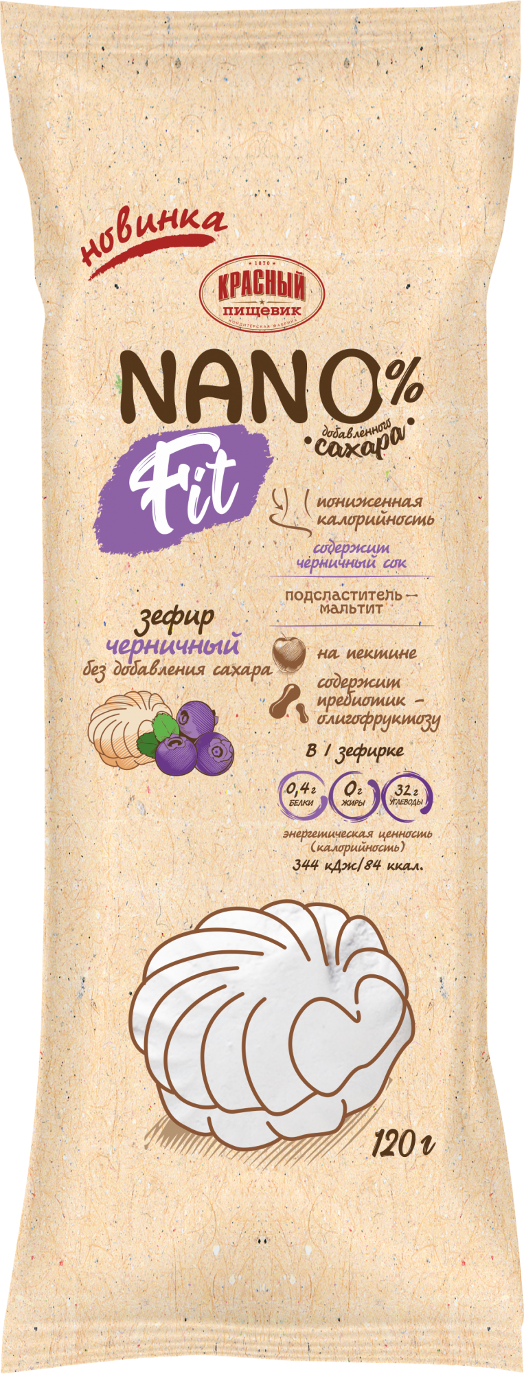 Состав: подсластители: мальтитный сироп, мальтит; пюре яблочное (яблоки, консервант диоксид серы), агент влагоудерживающий сорбит, агент желирующий пектин (стабилизаторы Е452i, Е450iii, Е450i; Е341i; декстроза), пребиотик олигофруктоза, белок яичный, сок черничный концентрированный, регуляторы кислотности: цитрат натрия 3-замещенный, лимонная кислота; краситель антоциан, ароматизатор «Черника». Содержит подсластители. При чрезмерном употреблении могут оказывать слабительное действие.